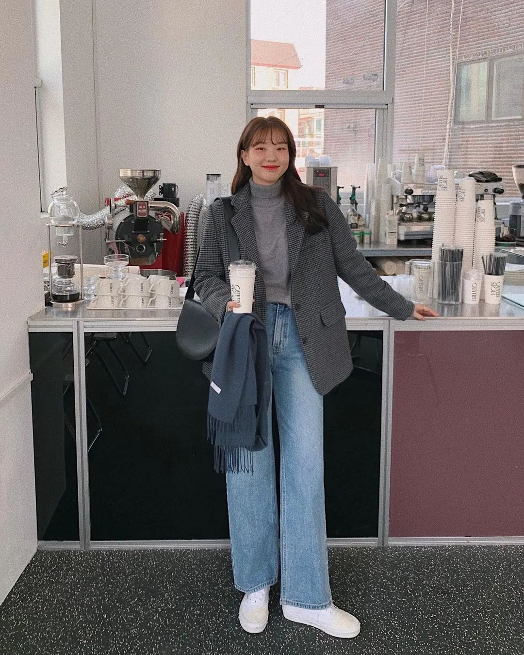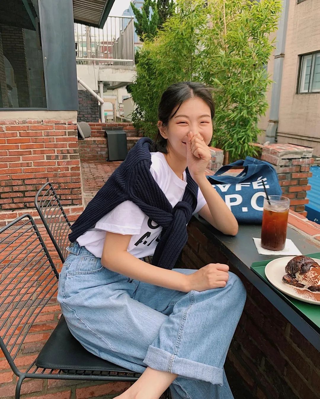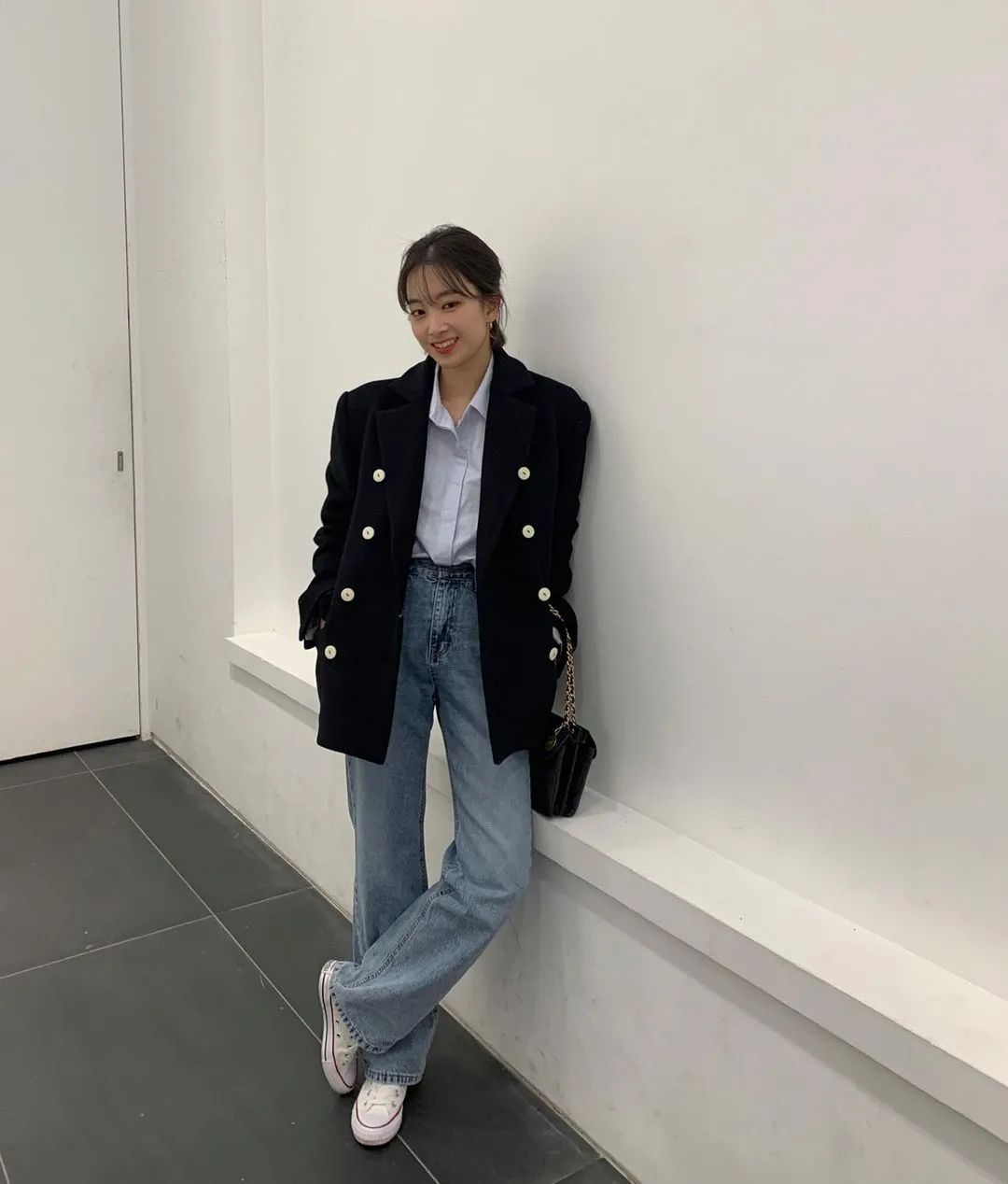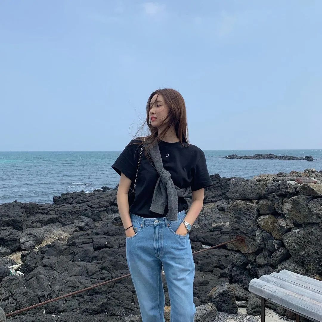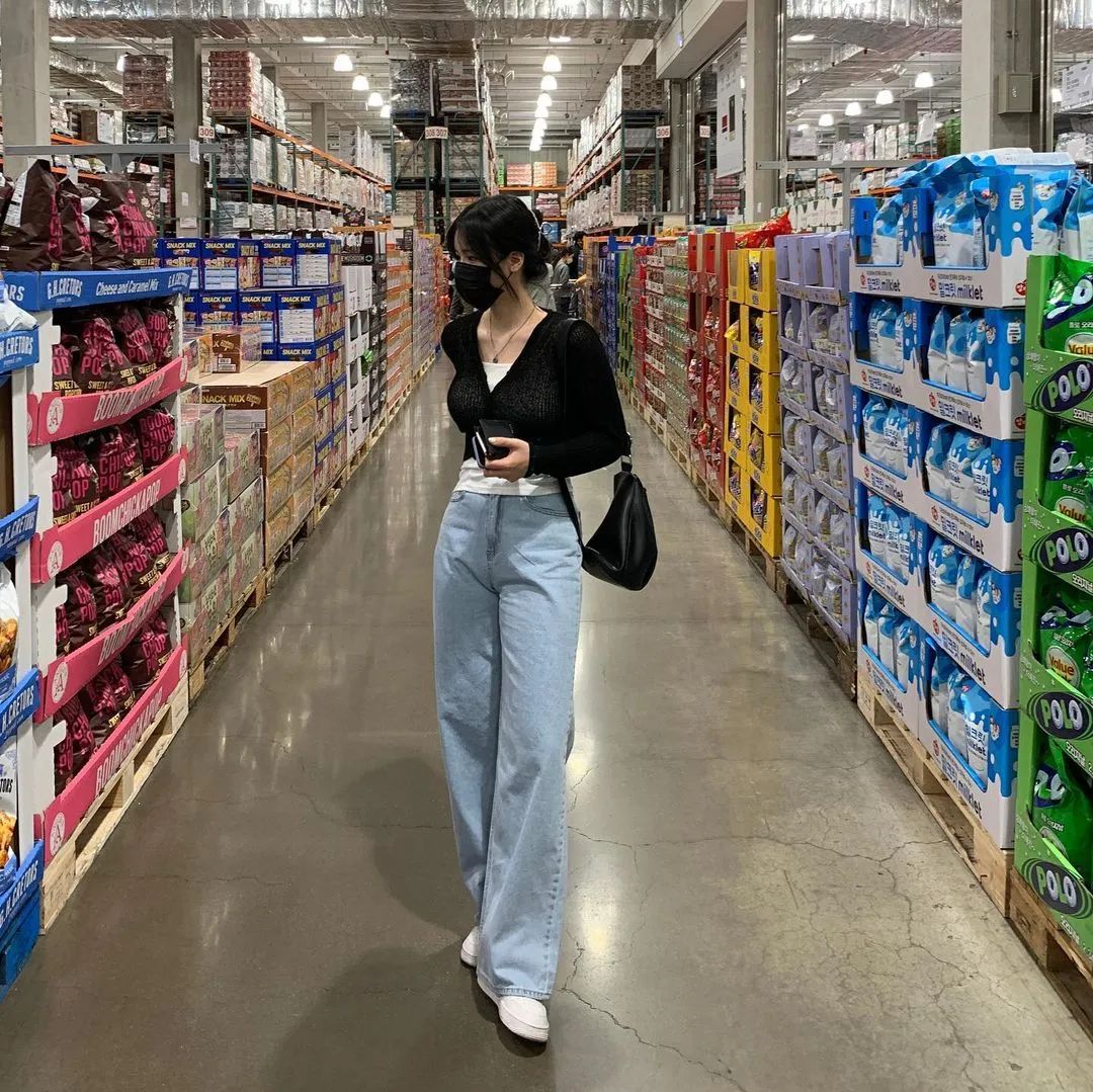 而韓國博主則更偏愛沒什麼曲線感的直筒牛仔褲,整體風格是休閒、率性的。▼