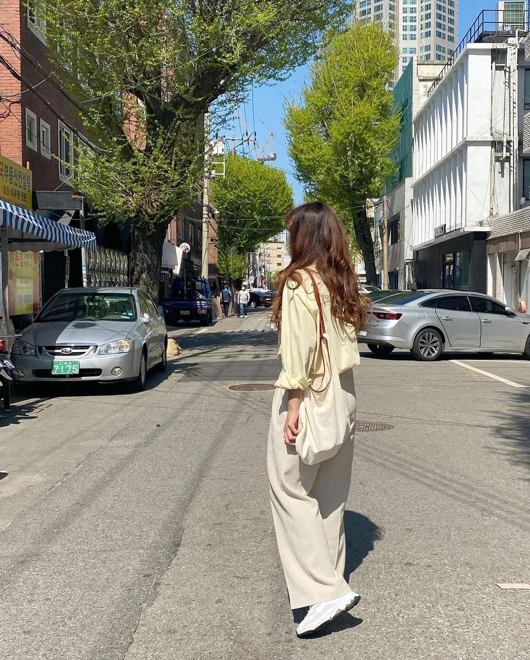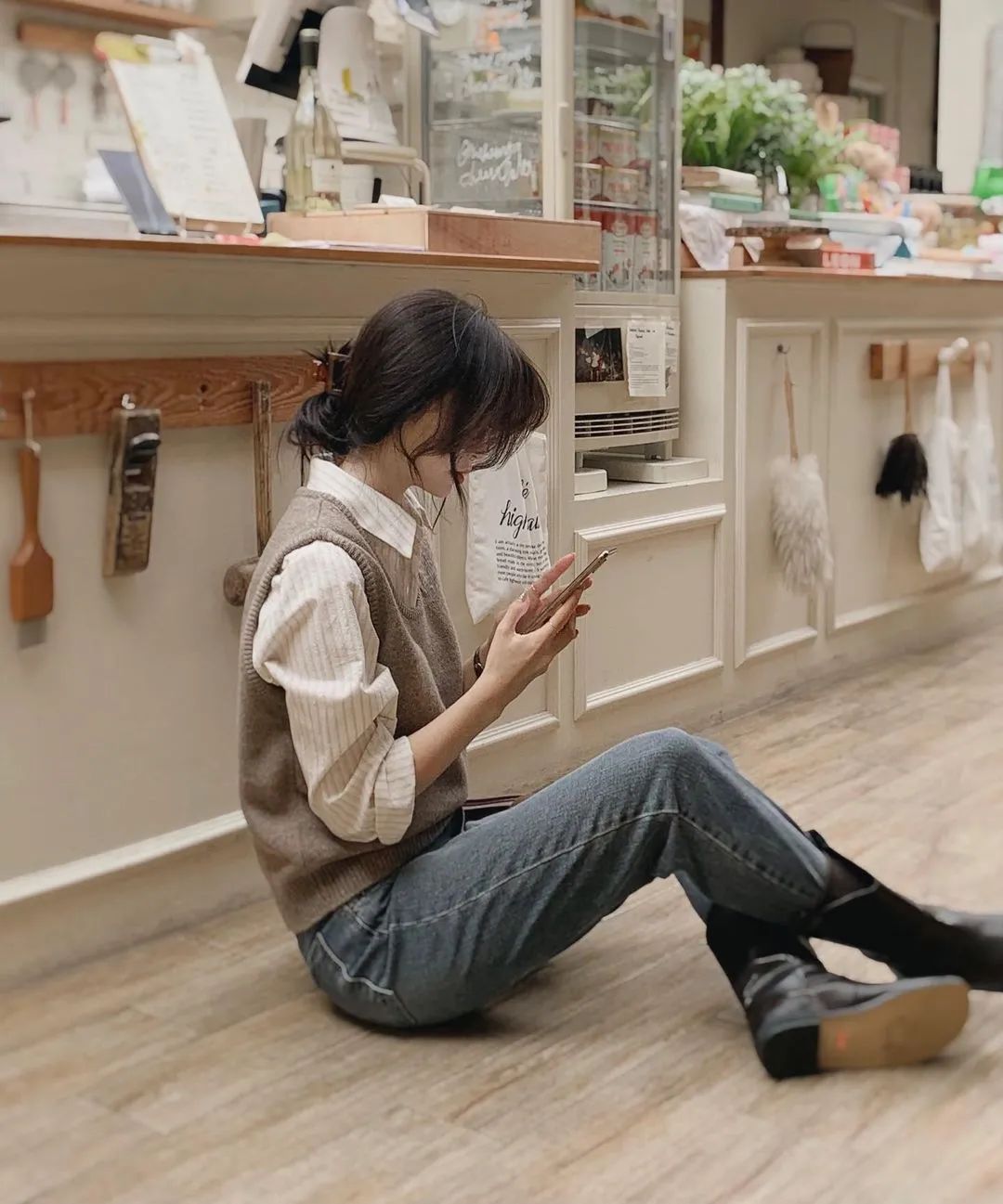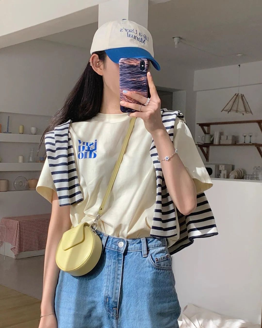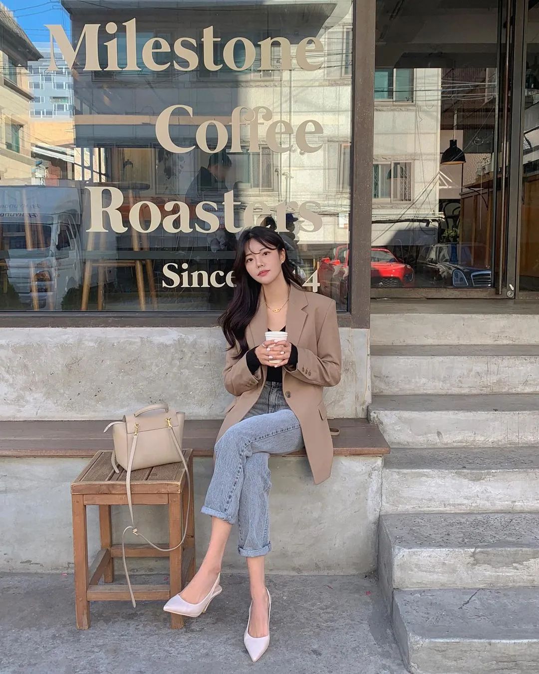 而韓國博主則更偏愛沒什麼曲線感的直筒牛仔褲,整體風格是休閒、率性的。▼