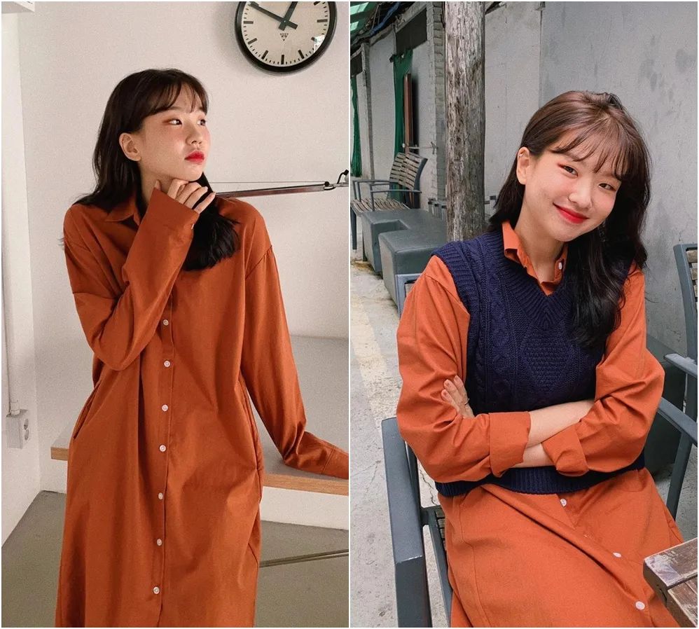 這個穿法這幾年還蠻火的,日雜中也很常見,但日韓穿出來的感覺還是有點不一樣。