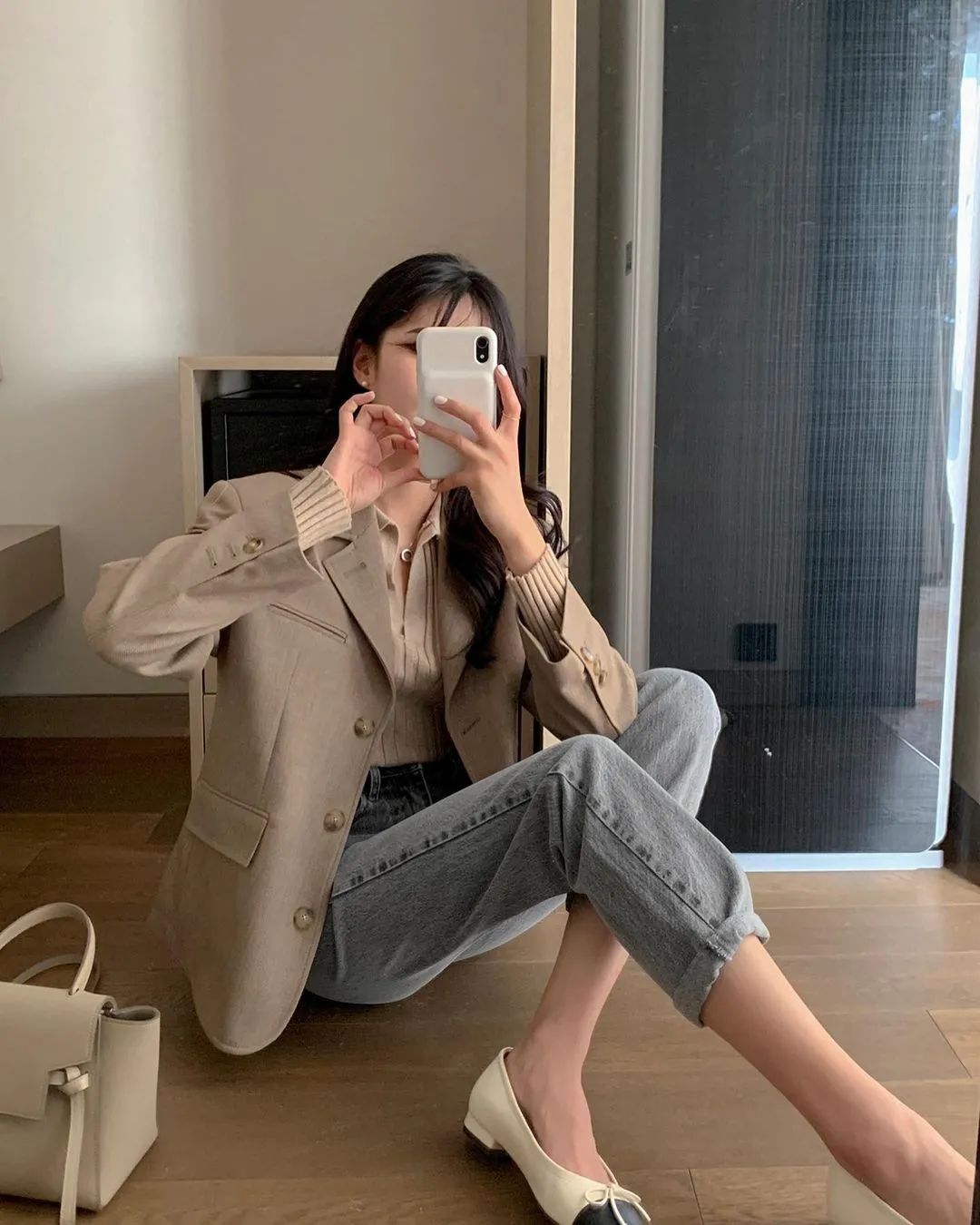 韓國人大概是趕時髦趕得最快的國家。她們很少有什麼獨創的單品,但很擅長快速追趕各種潮流,把各個地方的風格「整合」成自己的。例如這種韓式簡約風,也是深受歐美極簡風的影響,經過她們的整合,演變成了更適合亞洲人的打開方式。▼