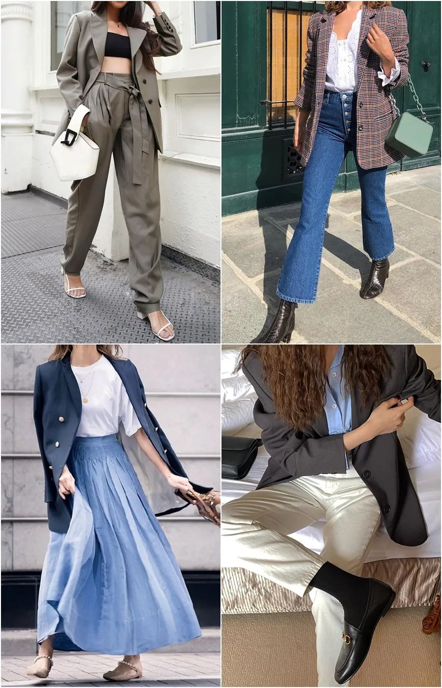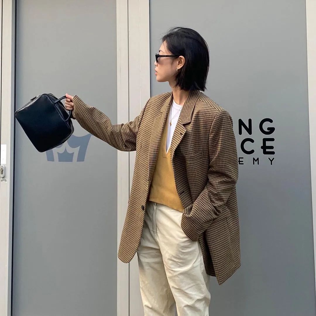 和襯衫一樣,她們的西裝也更喜歡選寬鬆的廓形款。修身的西裝看起來會很職業正式,寬鬆款的就沒那麼拘束了,想搭成職場風或者休閒風都可以。▼