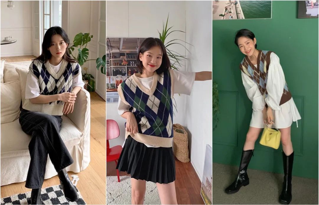 純色的針織背心是首選,更好配衣服。無論是內搭純色打底,還是一些條紋、格子的單品,都能輕鬆駕馭。