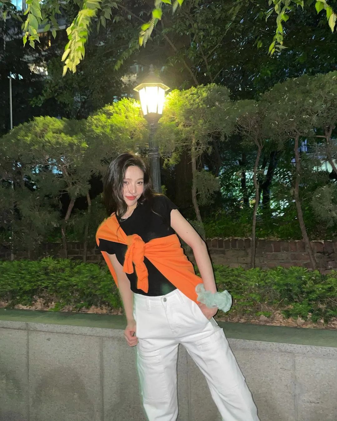 其實最簡單的辦法,就是像韓國博主這樣在裡面疊加一件白色T恤,在底部再露出一點白邊。▼