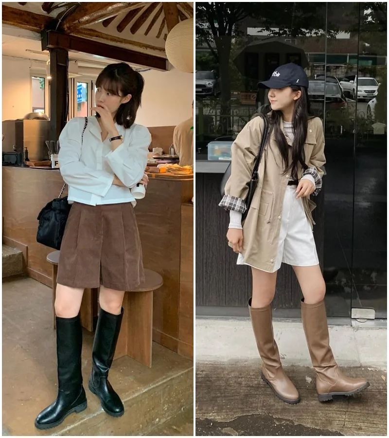 過渡季時,短褲+長筒靴的穿法她們也很多。不過今天廣州37度,我就不展開說了!▼