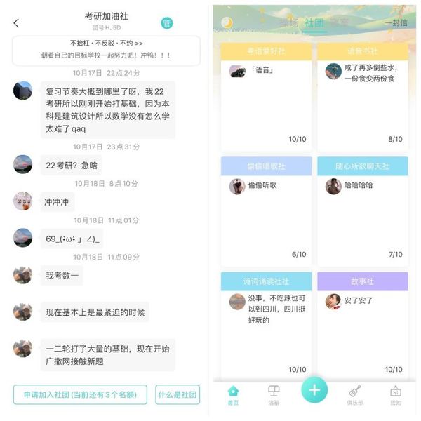 這款簡直是超良心神器,完全免費還沒有內購。可以十人一組抱團建社團,實時窺屏各類社團學知識;用語音記日記,堅持輸出,不斷反思,整理自己的邏輯思維。
