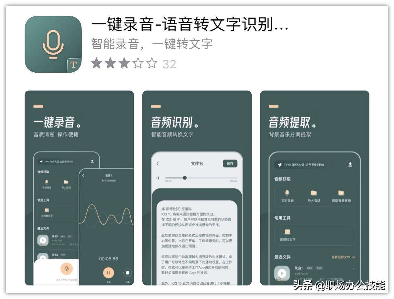 效果準確迅速,具備錄音轉文字、文字轉語音和音頻提取等功能,導入導出都提供了多種音頻格式選擇,上班族會議記錄必備神器。