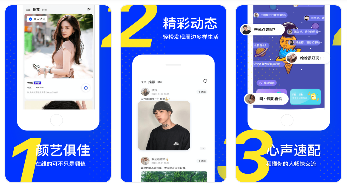 它是一款新青年愛玩的同城交友軟體,讓你靈魂共識,同時屬於高質量社區咯。