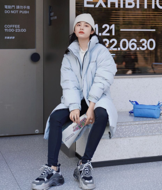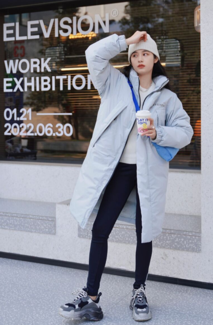 藍色的羽絨服搭配起來清新脫俗,而且淺藍色屬於流行色,顯白時髦,如果你想要避免膨脹感,下半身搭配緊身褲一定是沒有問題的。並且你們可以嘗試搭配短靴修飾你的比例,如果你希望穿得更加休閒,還可以結合運動鞋,看起來會顯得比較簡約。