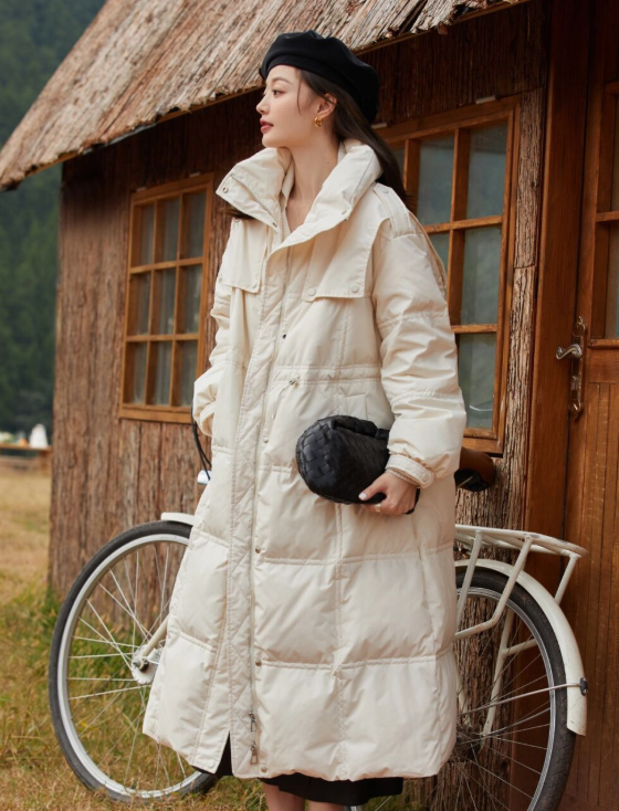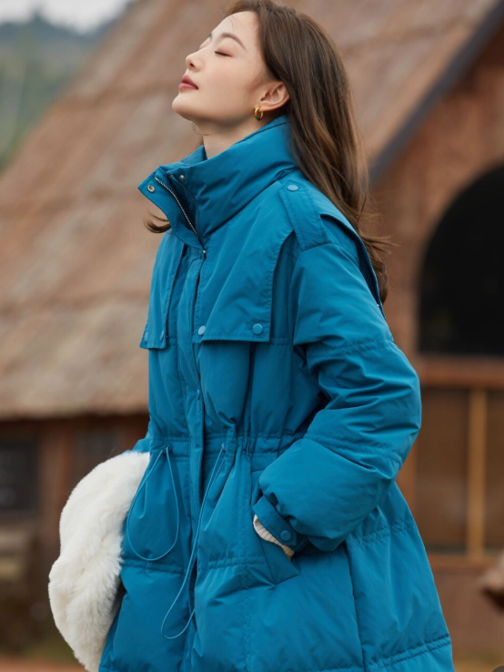 首先你們可以嘗試束腰設計的羽絨服,融入收腰的設計,可以直接修飾你的比例,體現高級感。例如微胖的美眉搭配羽絨服的時候都很容易導致臃腫感,結合束腰或者是腰帶來體現你的腰圍,自然就可以視覺上顯瘦二十斤。