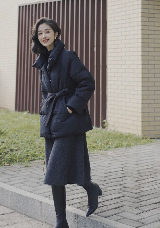 如果你是小個子女生的話,建議你選擇短款的羽絨服來穿搭,這樣就不會壓身材比例,穿搭起來顯高顯瘦,還非常的優雅,像下面這套穿搭。