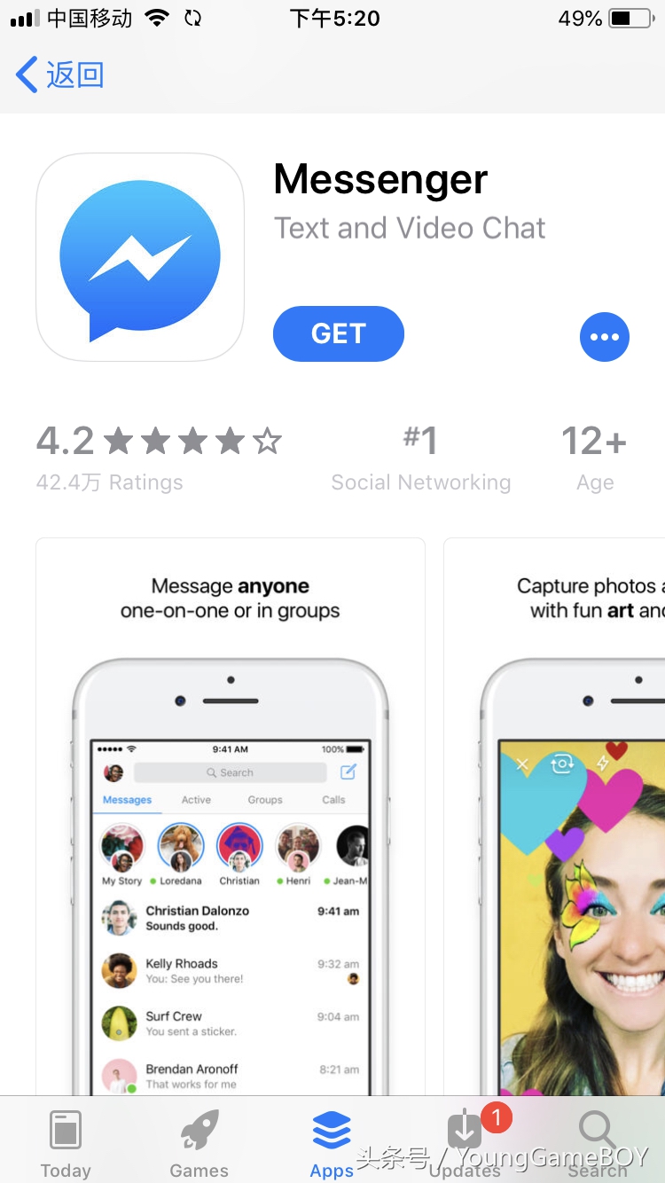 Messenger 是Facebook公司推出的即時消息app,憑借該軟體自身的優秀的性能,目前在國內已經擁有了大量的用戶群。使用Messenger可以與他人進行文字聊天,語音對話,視訊會議等即時交流,還可以通過此軟體來查看聯絡人是否聯機。Messenger 界面簡潔,易於使用,是與親人、朋友、工作夥伴保持緊密聯絡的絕佳選擇。簡潔的界面我喜歡。2017年5月3日,Facebook宣布,面向Messenger應用的全部12億用戶開放Instant Games遊戲功能。在未來幾周內,逐步向全球範圍內的iOS和Android版Messenger開放Instant Games功能。此外,Facebook還推出了今年f8大會上向開發者展示的一些新功能。