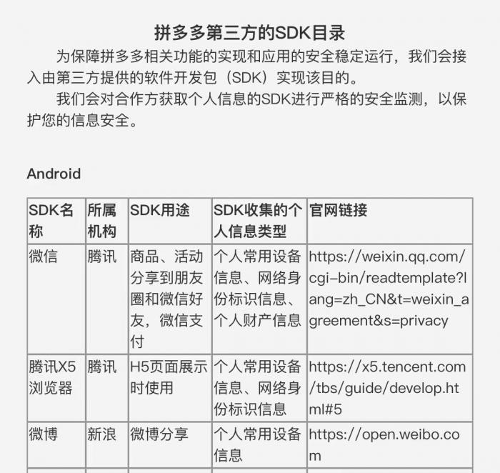 APP內通常會接入多個SDK(軟體開發工具包),利用SDK技術為用戶提供多樣化的服務。目前,所測20款電商類APP都在隱私政策中明示了接入相關合作方SDK的目錄,但因詳細度不同而存在一定合規問題。依據法律要求,APP應向個人告知第三方的「名稱或者姓名、聯絡方式、處理目的、處理方式和個人資訊的種類」。