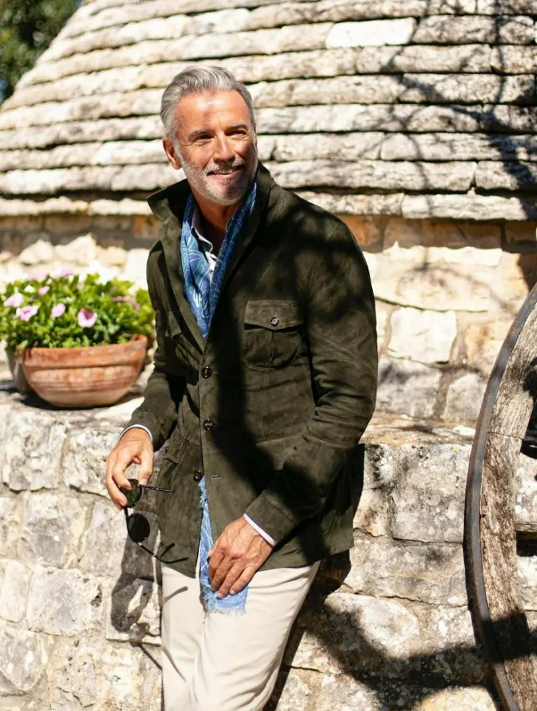 其次,考慮到膚色和年齡,50歲中年男性不建議穿花裡胡哨的著裝,不僅俗氣,也會給人過於浮誇、強行扮嫩的感覺。