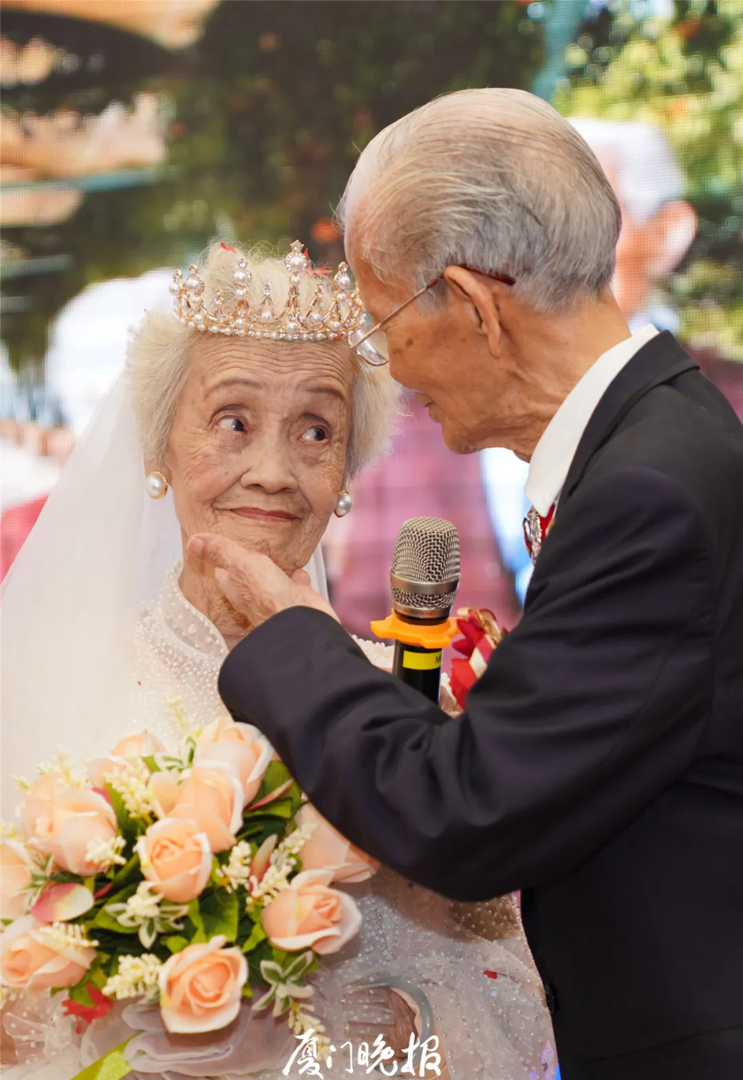 昨天,一場浪漫的婚禮舉辦,主角卻是一對白髮蒼蒼的老人。