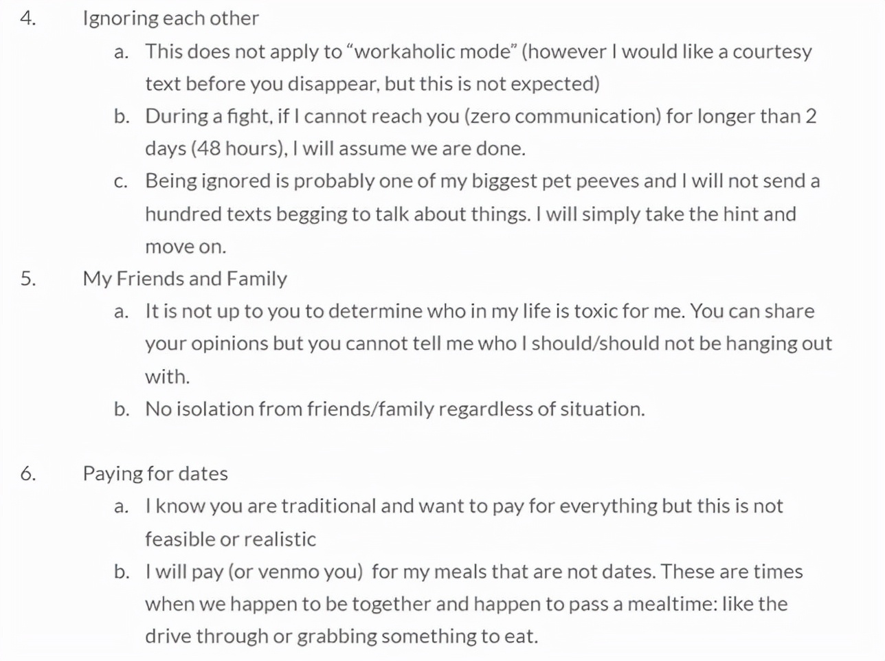跟男友簽訂一份《戀愛合同》,把所有界限都事先明明白白寫下來。
