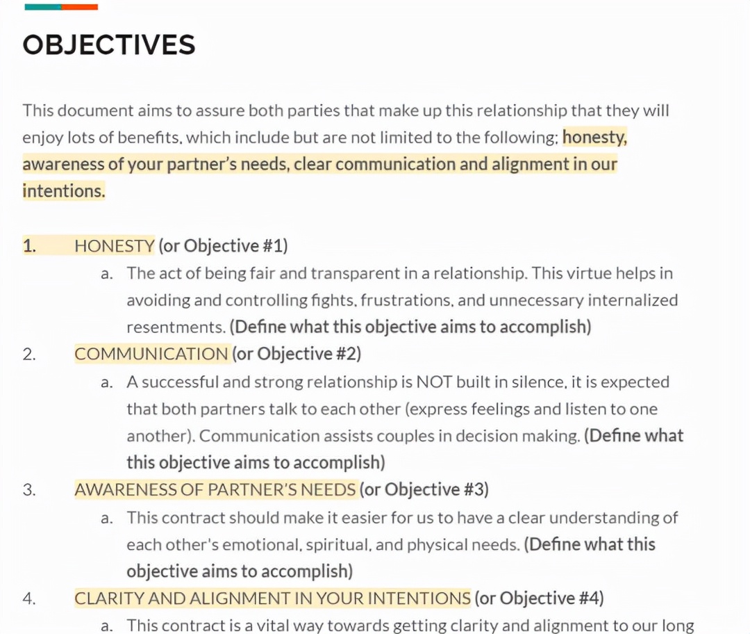 這份合同應有利於我們更好理解彼此在情緒,精神和身體上的需求。