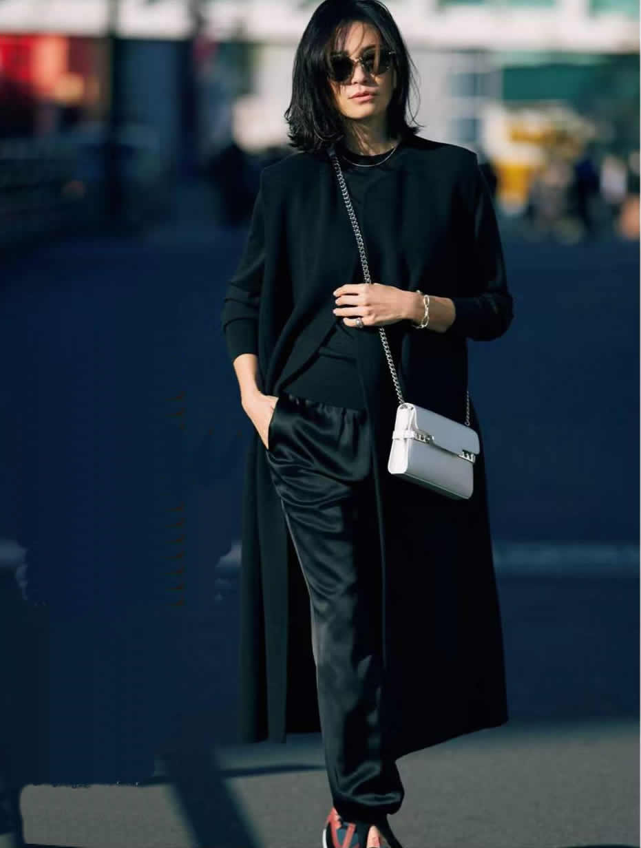 一身黑色,或者全身黑色面積達到60%以上,都會挑戰著穿著者的一切。長相?身材?氣質?自信?審美?搭配功底…樣樣考驗在列。