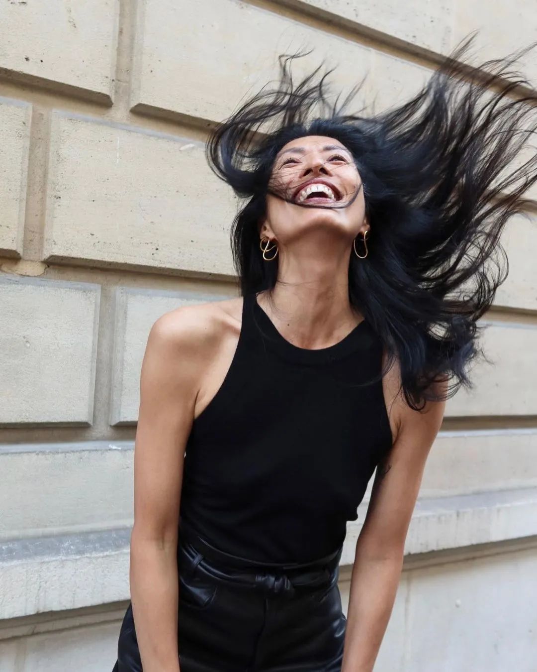 生活照中的Suzi大多只是簡單地刷一下睫毛,再塗些口紅。亞洲人的黃皮黑發紅唇也可以不失美艷,眼角的皺紋通過笑意都在表述著「這皺紋是我好不容易長出來的,不顯示出來太可惜了」。