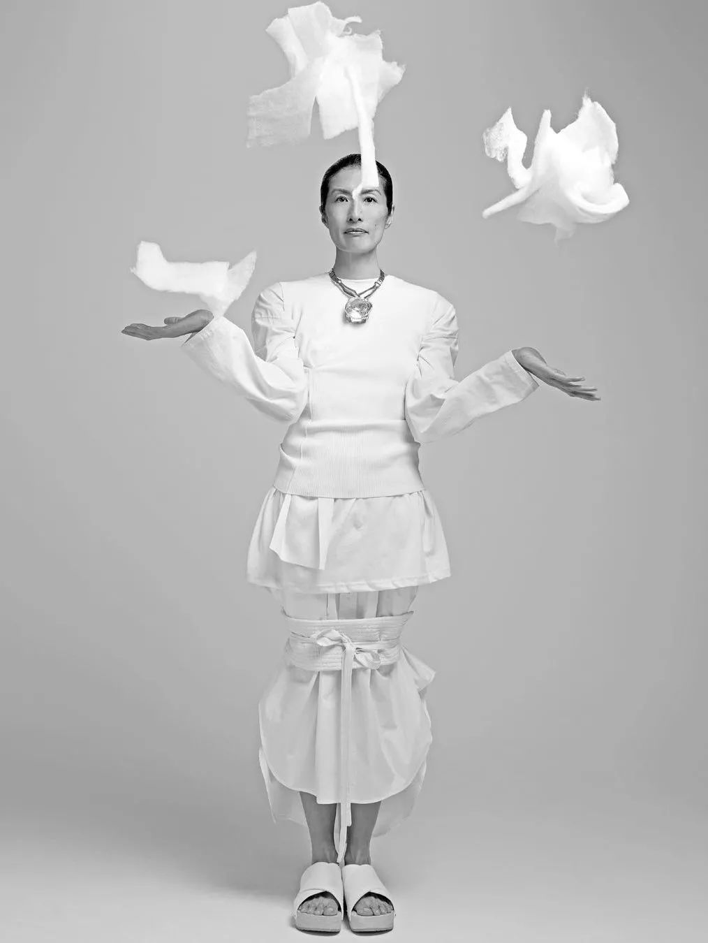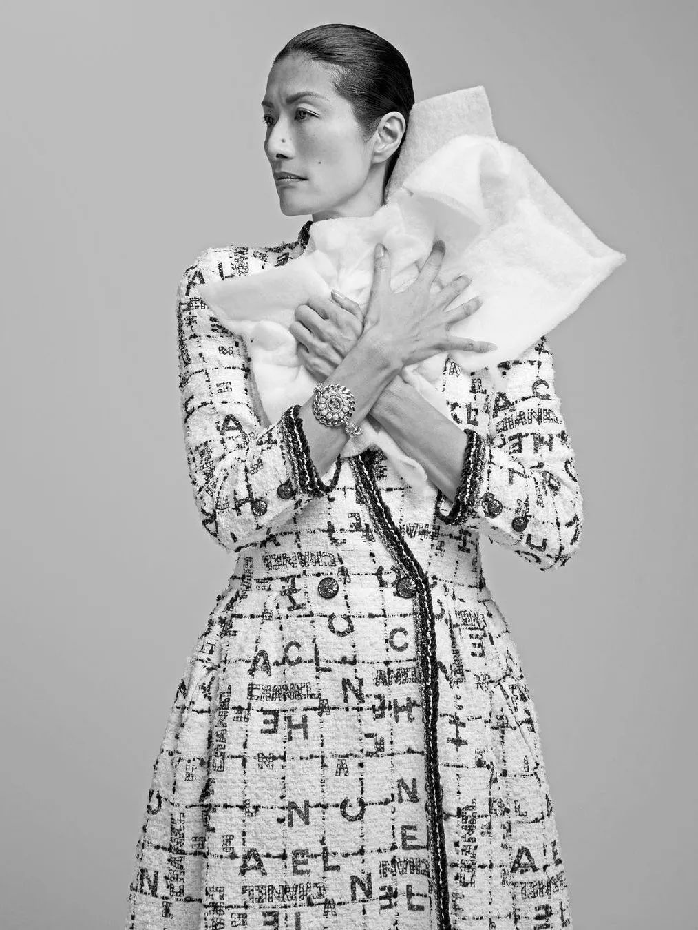 Off-White 2020春夏系列成為她的首秀,生澀的臺步掩蓋不住她獨特的氣質,所有人都對這個黑發黃皮膚的女生產生了好奇,這一年她50歲整。