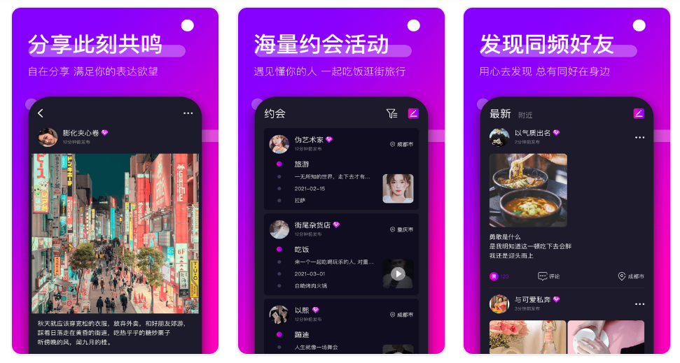 廣場上可以發布自己的動態,美食分享或者自拍什麼的都行,定位準確會有人主動找你,同城附近也可以刷到,這是很多人都會喜歡的功能,因為畢竟不想談異地戀。