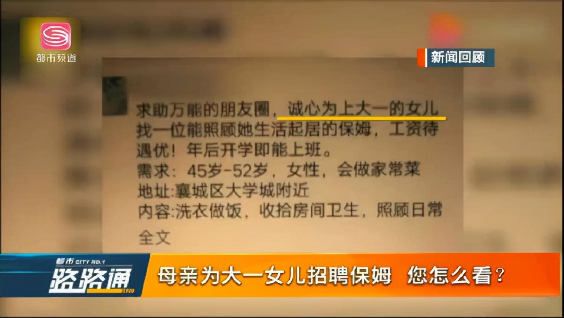 此前,劉女士為大一的女兒發朋友圈招聘保姆的新聞,在網上引來無數網友的討論。