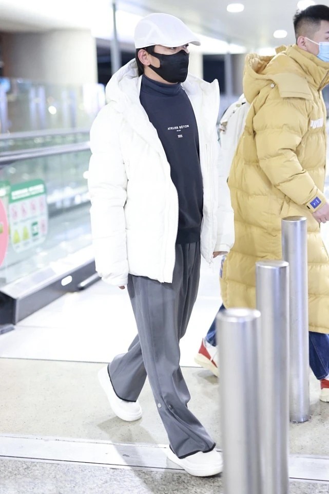 王寶強亮相機場變潮男,用羽絨服穿出高級感,這衣品越來越好了