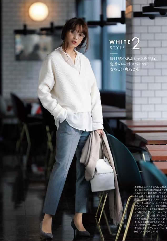 白色百搭好看還顯膚色白皙,而軟糯的白色毛衣會讓女生的溫柔與純潔同時演繹,不需要太多的裝飾就能塑造出優美的畫面。內搭一件白色的襯衫,形成疊穿的樣式,內長外短的設計,又能增添幾分時髦的感覺。