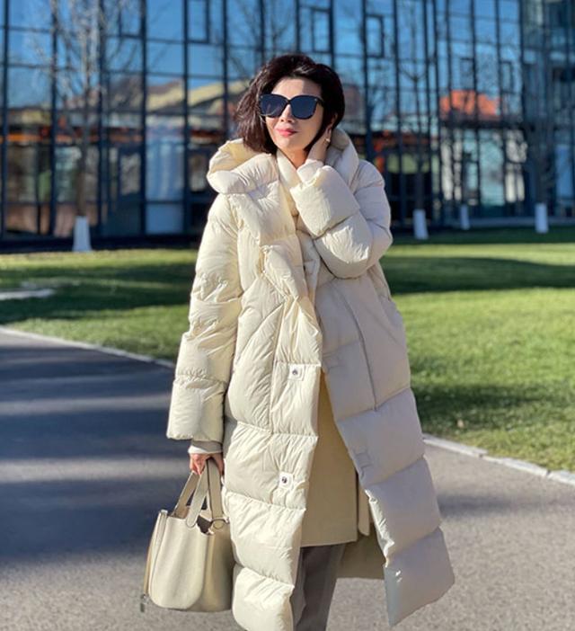 白色的羽絨服有著雲朵一般輕盈的感受,穿在身上溫暖又溫柔。但是,蓬松的外形確實有著拉寬身形的作用,因此,更加適合身材高挑又苗條的女性。尤其是長款的樣式,對身材的包裹面積較大,版型的選擇不要太過廓形,內搭也不要太過飽滿,留有一定空間會更出彩。