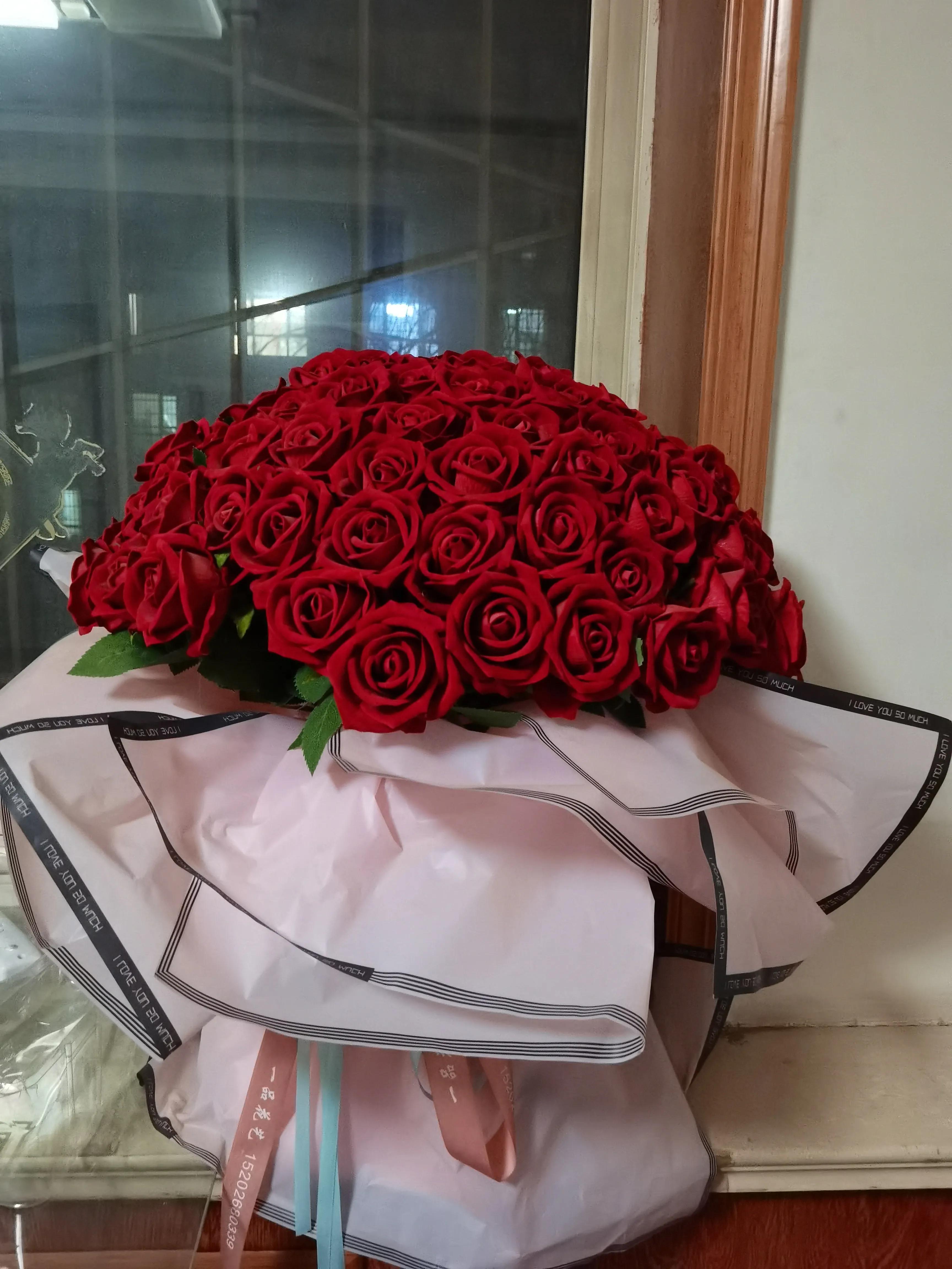 回來後一個月左右我過生日,我那天休息她上班,我就想借我生日補給她一個浪漫的表白儀式,因為我一直覺得酒後表白總歸不太好,加上也沒有當面說過,所以想給她補一個以後回想起來都是浪漫的表白儀式,我和同一天休息的男生開車去商城買布置場地需要的道具什麼的,例如氣球蠟燭玫瑰戒指等……玫瑰買了99朵,買的是假花,一是真花太貴,咱實話實說,二是真花放不了幾天就枯萎了。所以最後買了假玫瑰花,就是塑膠花(現在還在我倆租的房子裡放著)