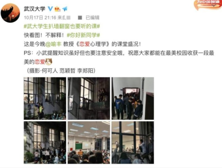 最近,武漢大學《戀愛心理學》爆火,上課畫面一度在網路刷屏!