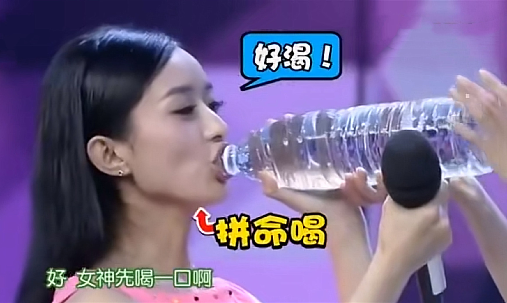其中一個環節是主持人為了節目效果,讓趙麗穎和李晟比賽喝水,誰知耿直girl小趙同學直接搶過李晟手中的礦泉水猛灌,姿態與得體沒半點關係。