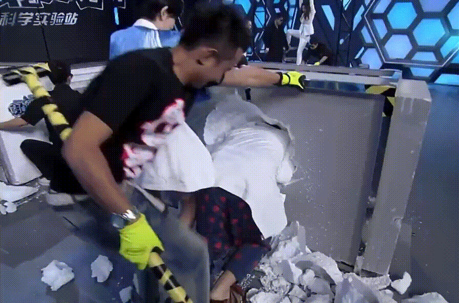 同樣被謝娜整無語的還有成龍大哥,當年大哥帶領「成家班」參加快本時,成龍讓一個朋友表演高空換衣服,何炅看完開玩笑表示「很多演員都有恐高症,例如大哥」,隨即成龍也一本正經地說「我恐高的」。