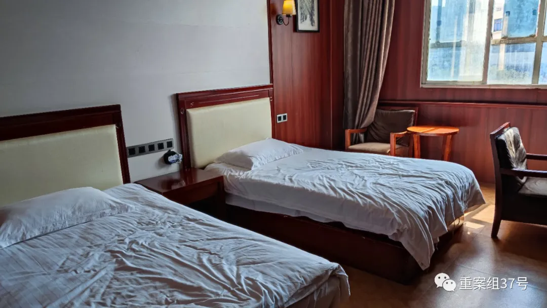 十幾平方米房間,被兩張單人床占去了大部分面積。許鑫稱,他和吳世勇都沒想到對方會直接拿房卡刷門,對方個個人高馬大,很兇,沖他們喊,「給你們臉了!」「給你們時間自己叫人。」
