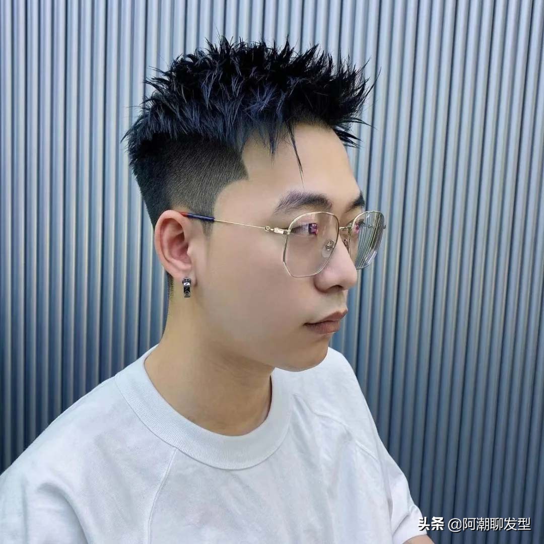 比起一般的兩邊鏟短髮,這款凌亂露額短髮顯得更加個性有型,而且打理起來也比較簡單。兩邊的頭髮漸層鏟出漸變的效果,鬢角精修一番,頂區的頭髮及瀏海保留一定的長度,再剪碎一些,然後在打造造型的時候瀏海稍微吹翹起來,喜歡更加彰顯個性的男生還可以打造出凌亂的側分效果,這樣整體造型顯得比較率性個性,帥氣又有型,非常適合年輕的男生去剪。