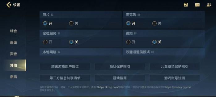 (圖說:《LOL手遊》中的個人資訊撤回步驟較為清晰明確,點擊「設置(圖標)」-「其他」,便可撤回照片、麥克風、定位服務、通知等系統功能。截圖時間為11月12日。)