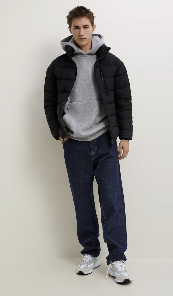 不同於修身的版型,當選擇寬鬆的直筒羽絨服時,整體造型的休閒隨性感會大大增加。寬鬆的版型雖然會在視覺上帶來橫向的過程,但是對於身材也具有極大的包容性,這個時候結合寬鬆單品,你就能夠打造出十足的潮男造型。