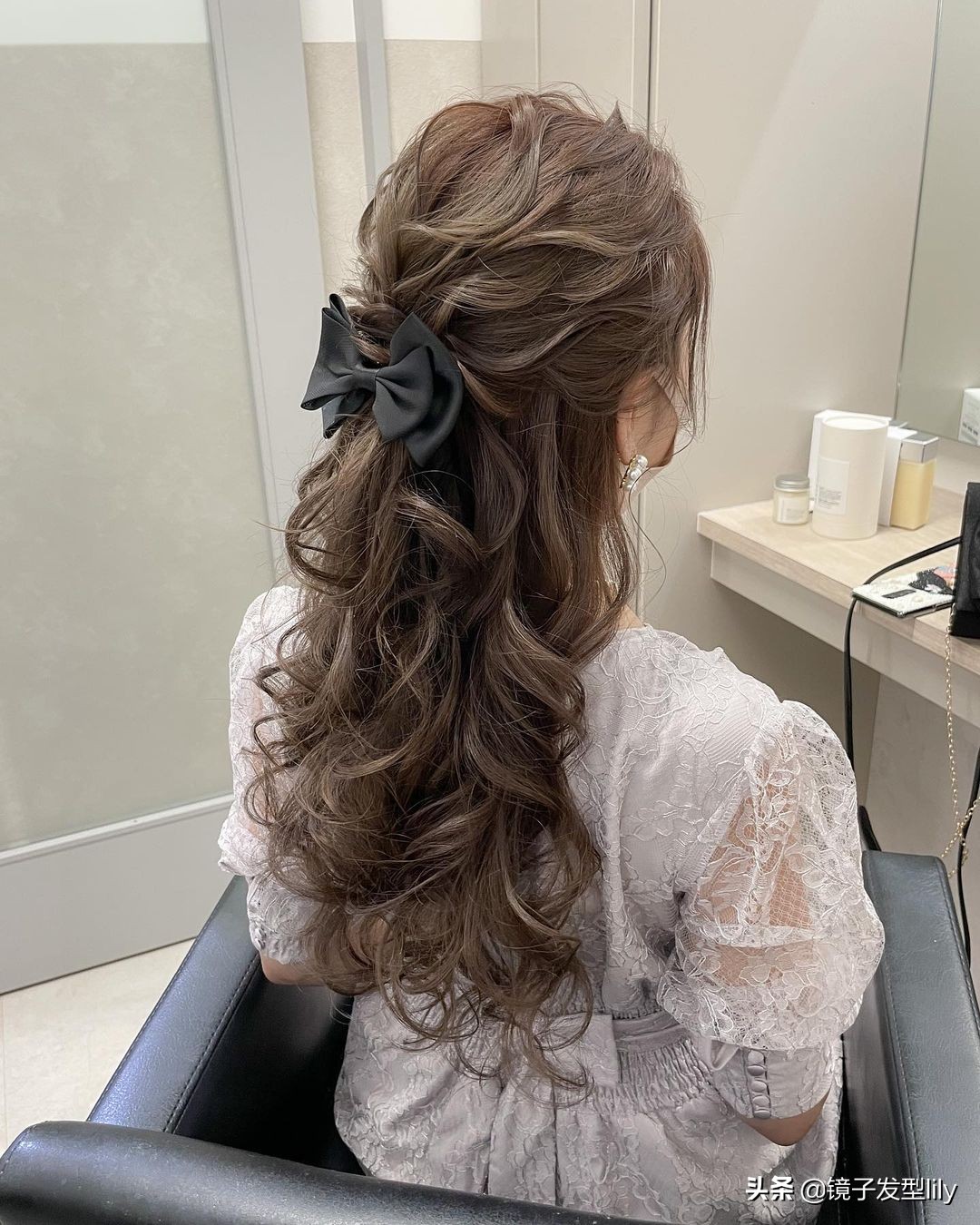 長捲髮除了平時披散下來,還可以做一個半紮發,這樣可以把臉部周圍的頭髮收攏起來,增加利落感,整體看上去還特別優雅有氣質。