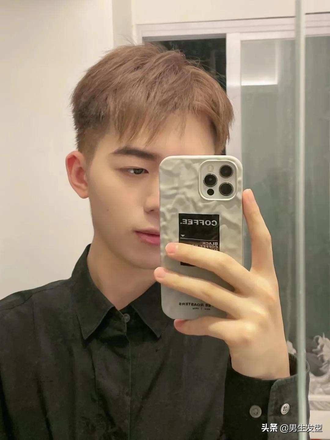 男生的髮型,除了在造型上打造好看的造型,還可以在發色上下一點功夫。例如上面這位小哥,把頭髮打造出A字瀏海的效果,同時染上特別有個性的霧棕色,整體減齡帥氣,盡顯潮男架式。
