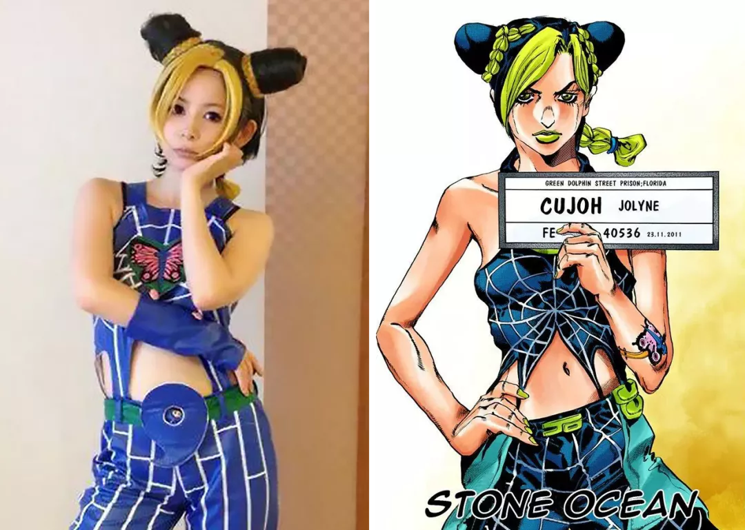 空條徐倫走的則是歐美街頭風格,放射形吊帶搭配同款修身長褲,將單純可愛與性感完美結合,夠甜又夠辣。▼