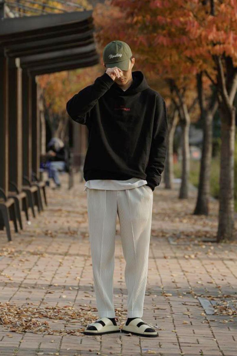 帽衫之所以能夠呈現出青春感,很大程度上來源於外形設計。極具寬鬆感的版型會讓整個人看起來隨意感十足,即便你想選擇相當具有厚實感的材質,也並不會顯得厚重愚笨,配合深色甚至還具有幾分顯瘦效果,讓搭配看起來相當吸睛。