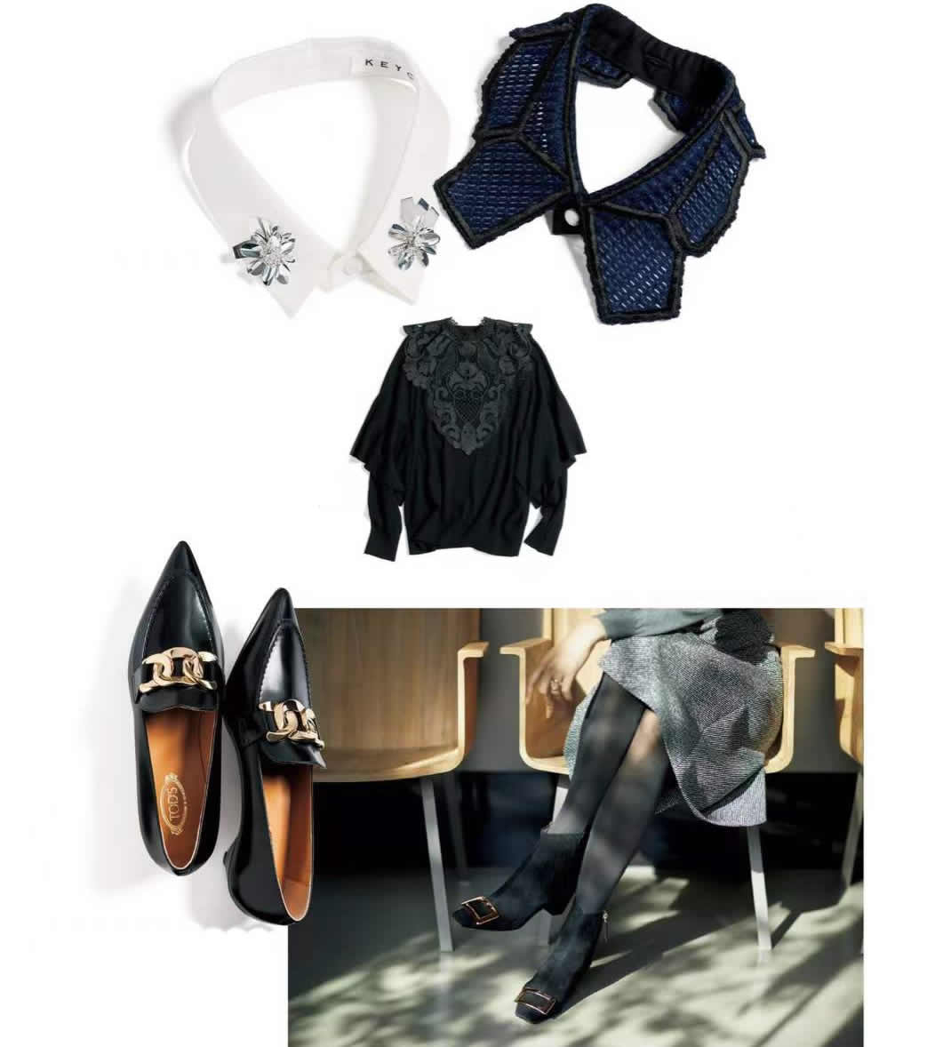 可替換的假領子,是挽救質感穿搭的小工具,襯衫、毛衫、上衣,也許都可以借它來場出其不意的時髦。鑲鑽、透視、網眼、蝴蝶結…應有盡有。