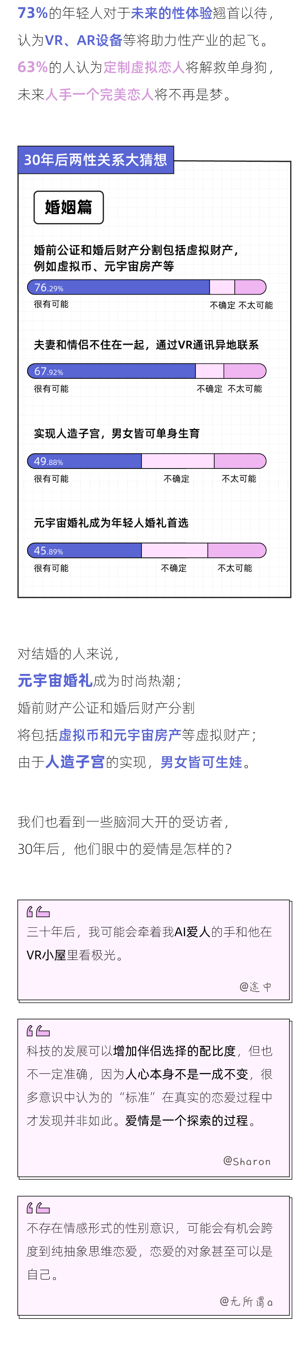 愛的內核依然是陪伴、忠誠與責任,改變的只是約會、交往、相處這些具體的外在形式。然而,年輕人們越來越多地提及「陪伴是愛的本質」,這也恰恰暴露出,即便技術正乘著高速列車前往下一站新世界,人們精神世界的裂痕也遠遠沒有被填滿。