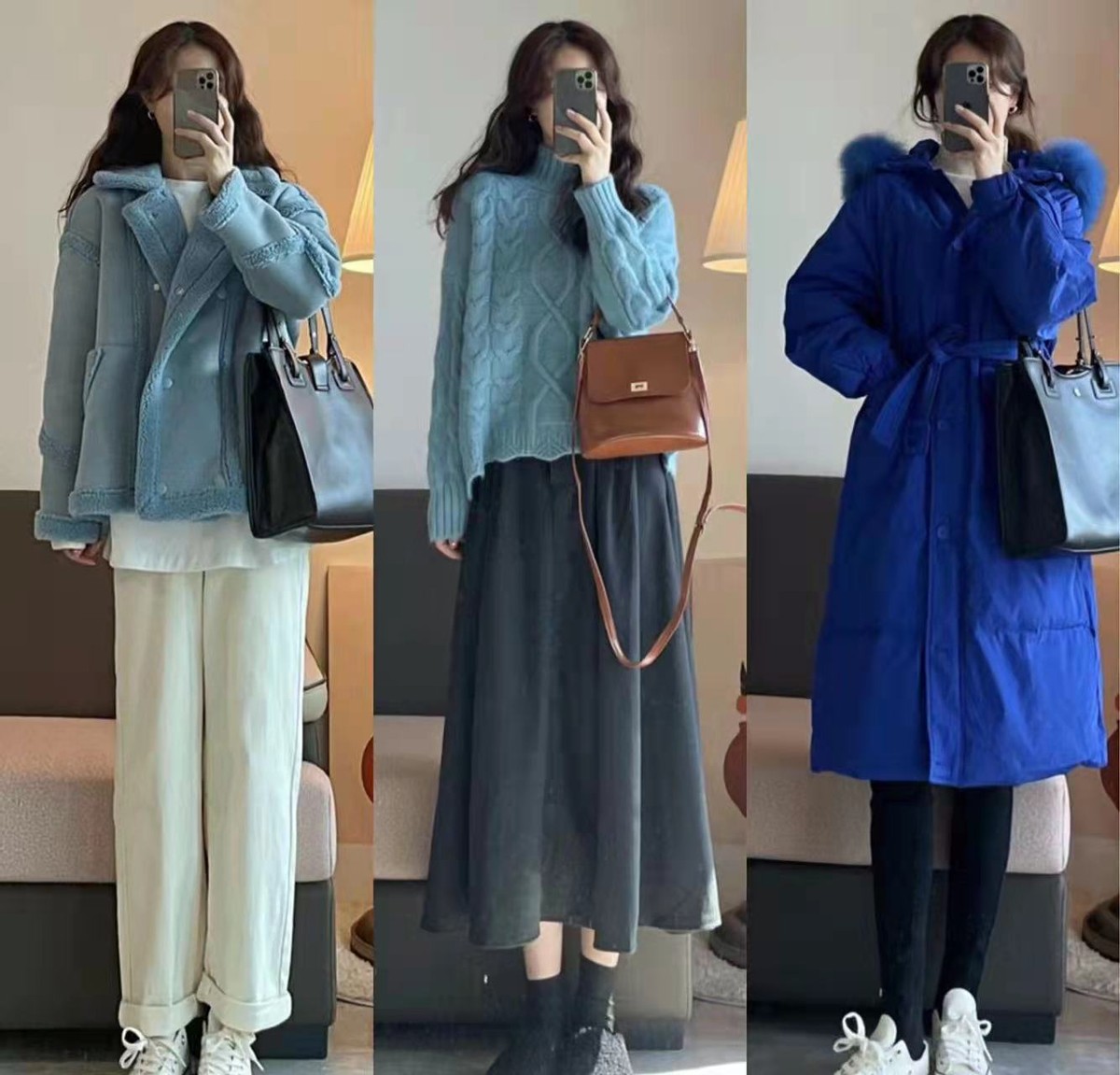冬天很多女生都比較喜歡穿牛仔藍,因為比較百搭,其實除了牛仔藍之外,霧霾藍和克萊因藍是今年冬天很受歡迎的兩種顏色,千萬不要將霧霾藍定位於隻適合年齡大的人。霧霾藍色的羊羔毛外套搭配米白色的褲子,淡淡的顏色之間組合,溫柔又有氣質。