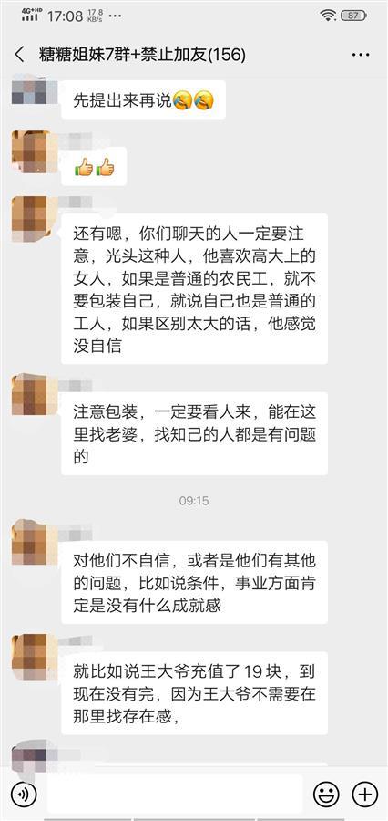 來自西安的張波與極目新聞記者之間的互動最為頻繁,他稱APP的一位女性網友曾告訴他,平臺會自動屏蔽電話號碼或Line號,對方給他發聯絡方式時,多個數字顯示為*號。在「糖糖姐妹7群」Line群中,極目新聞記者曾看到成員們討論如何應付男性網友索要聯絡方式,對付辦法就是故意發送帶*號的聯絡方式,並主動告知對方平臺會屏蔽。