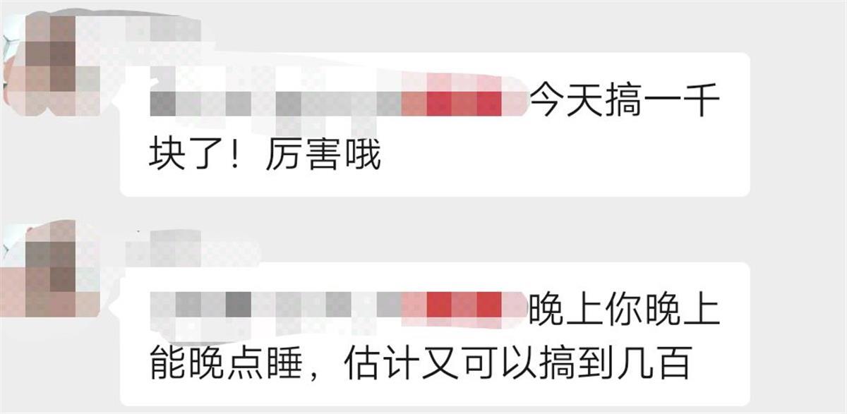 除了在群內咨詢陪聊過程中遇到的問題,還有不少成員會在群內分享她們每天的「戰利品」。一成員表示自己每天的收入在400元至500元之間,一個月收入已經過萬元,另一成員也表示自己陪聊了兩個月,每個月收入都已過萬。
