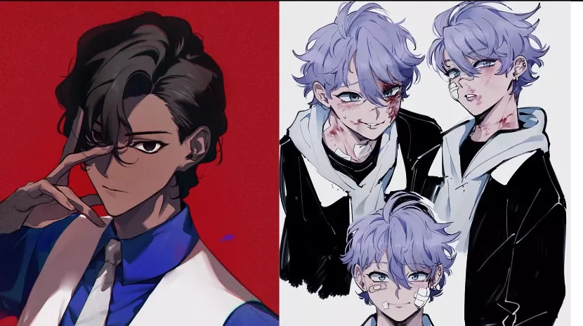 第二類是這種 ,常出現在男二身上的髮型,一般是有分縫的,