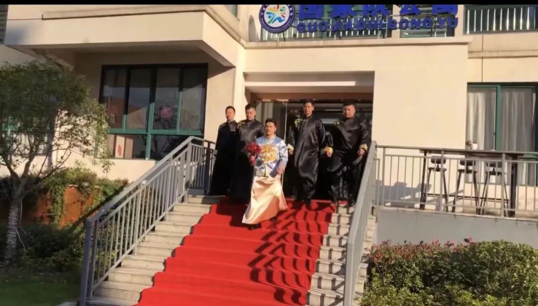 石智勇從鄞江重競技訓練基地的國家隊公寓出發,前往奉化溪口迎娶新娘陳曉旦。中午和薄暮,他們將分別在奉化和寧波宴請親朋好友們。
