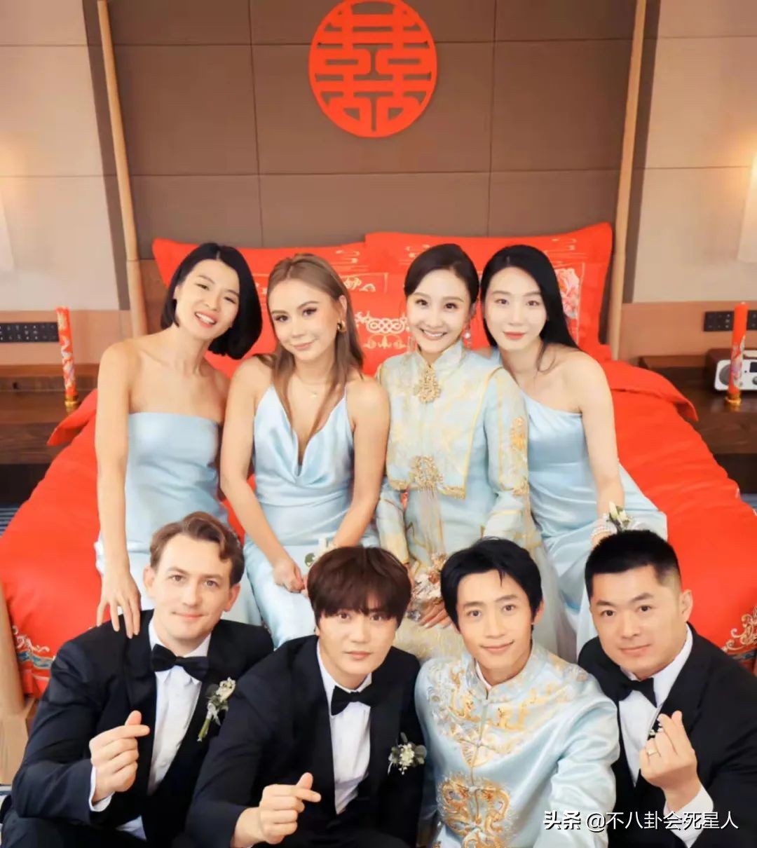 從婚禮現場來看,伴郎伴娘多為圈外人,就合照來說,伴娘穿的是藍色裙子,落落大方,伴郎穿的是傳統的西裝加領結,紳士優雅。但還是新郎新娘最好看,什麼也不說了,祝福魏晨,願他和於瑋百年好合,早生貴子。