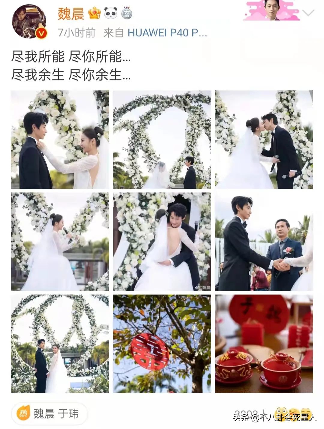 首先讓我們來沾沾喜氣,因為男神魏晨結婚了。魏晨的老婆叫於瑋,是圈外人,長得很漂亮,婚禮現場,二人同穿藍色中式婚紗,郎才女貌,十分般配。