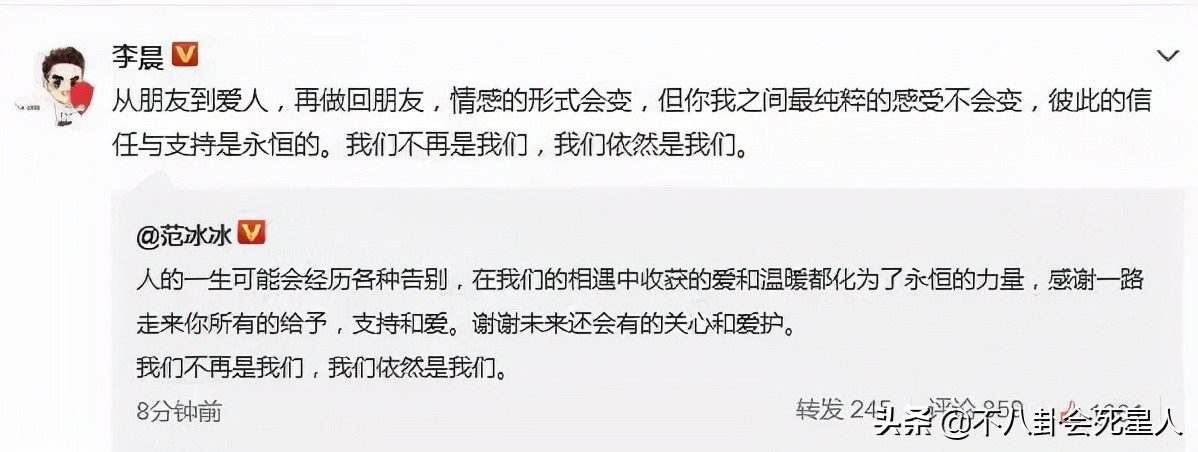 范冰冰李晨也是在這天官宣分手,他們從朋友變成了戀人,最後還是選擇做回了朋友。